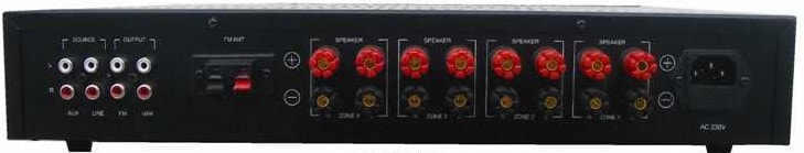 SPEAKER OUTPUTS FOR 8 CHANNELS, FIXED LINE OUTPUT TO DAISY CHAIN AMPLIFIER AND A VARIABLE OUTPUT TO CONNECT ACTIVE SUBWOOFER