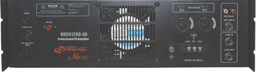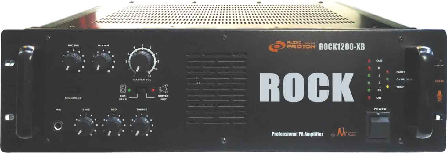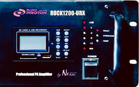 Audio Proton Rock series offers two popular models ,powerful with multi-purpose usage and high reliability. Nx electronic engineers spent long time studying the raw materials from VIP suppliers. After countless tests ,they found the best quality components for NX series amplifiers without any compromise. This ensures Hi-Fi sound and high damping factor, suitable for multi- power output. PA Amplifiers are sweet sounding and newly designed for use in wide variety of installation .Rock series is mixer PA amplifier Rock1200 XB with 1200 watts, Rock800 XB with 800 watts and Rock600 XB is 600 watts 1 unbalanced mic inputs, along with 1 Aux inputs and a built –in MP3 playback facility. Apart from the MP3 facility Rock can be operated with USB pen drives and SD cards as well .A Back it LCD Display shows the track being played and along with the timer. The Master output is for connecting to booster amplifier and line input for connecting external PA audio mixer. It comes with the preamp for recoding on a cassette recorder. Tonal adjustments is provided for the Cut- boost type treble and bass controls. A-5 LED array display output .Do not play at such high volume setting that volume settings that both red LEDS are always ON. Box speakers / diver unit selector switch has been provided for protecting the driver units diagram from unwanted low frequencies . Since box speakers can reproduce the full spectrum of audio frequencies but driver units cannot reproduce very low frequencies ,the switch should be positioned to the driver unit side when Driver units side when Driver Units Horns and Column speakers are connected. To Safeguard the amplifier against overload and short circuit the device is there to protect the circuit. Along with it protection provided against reverse polarity Battery connections. Even though the change over from AC to Battery operations if batteries are connected, ensure the continuity of program All these features coupled with the extremely ease of operation combined with service accessibility has been optimised in the design.
