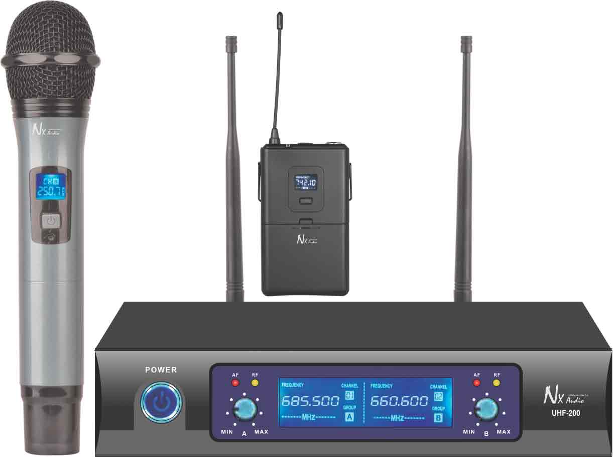 - Nx Audio UHF200HL Handheld + Lapel Wireless Microphones