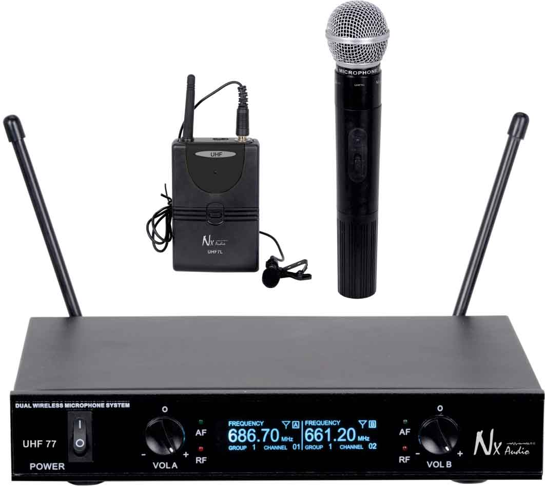 NX AUDIO UHF 77HL WIRELESS DUAL HAND + LAPEL MICROPHONE