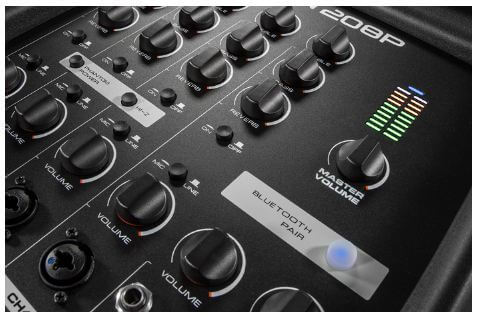 Description: Powered 8-Channel Mixer, Bluetooth audio and included AKG microphone.