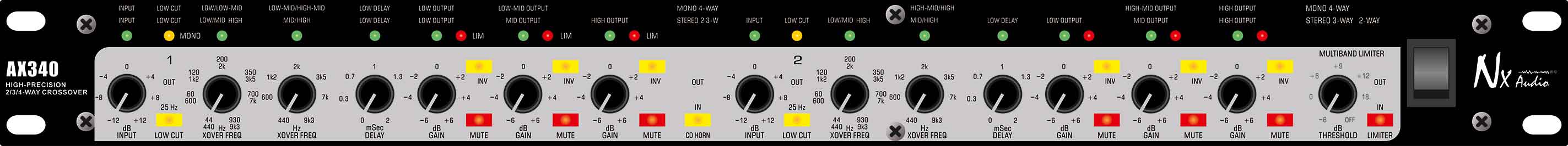 Stereo 2-way/3-Way/Mono 4-way active crossover