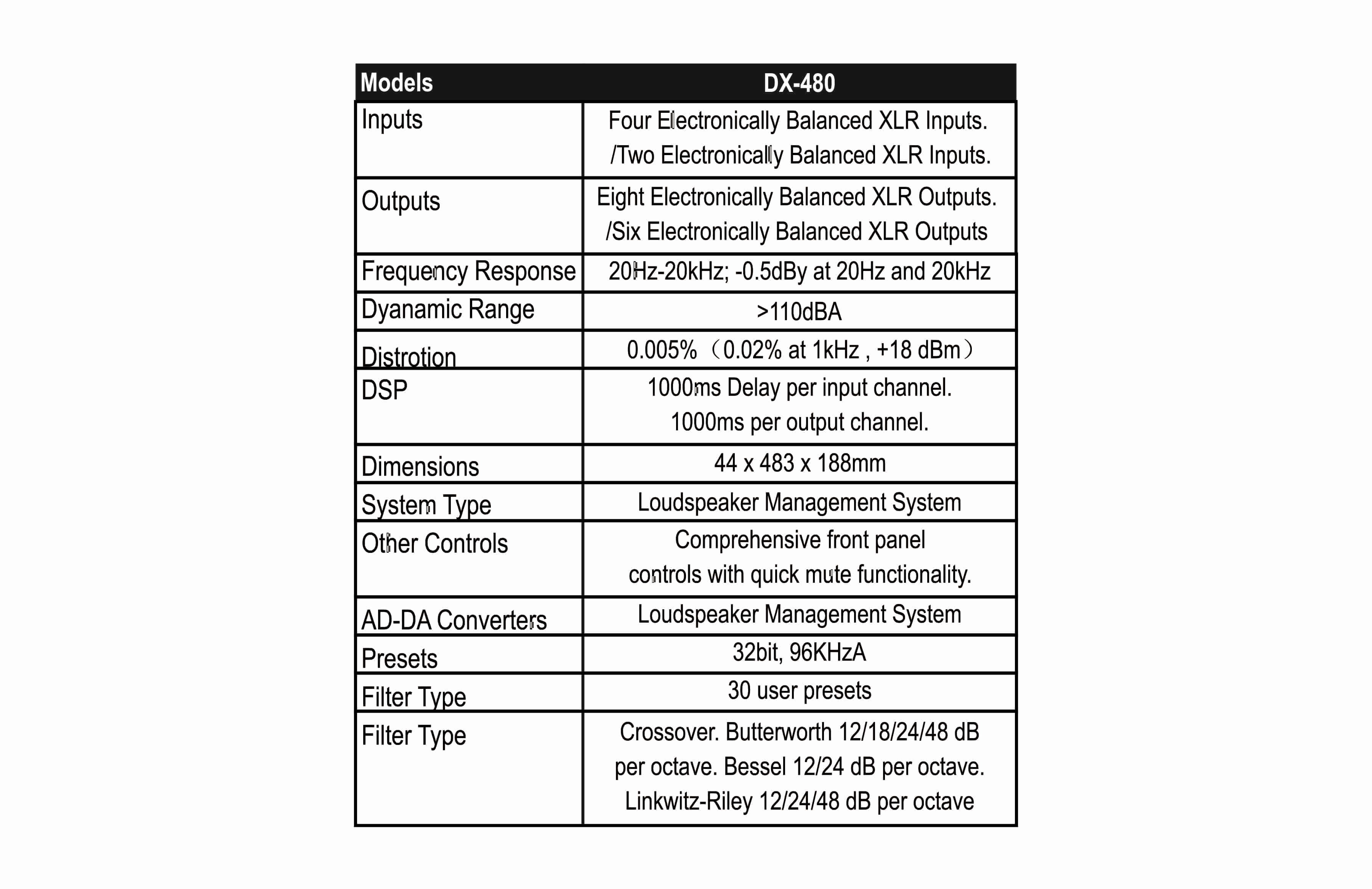 The DX series High End Digital Speaker Management systems combine an outstanding full 96kHz DSP processor with Floating 32 Bit AD/DA Converters to provide Superb Sonic Performance.
