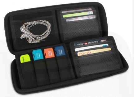 Fits : 4 USB Sticks, SD cards, business cards, credit cards and small accessories